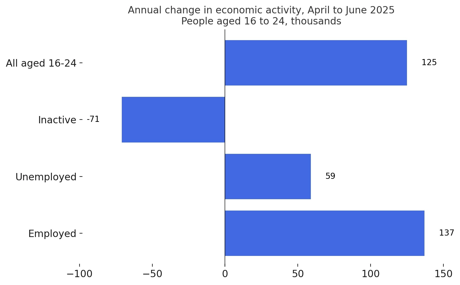 Nevertheless, the most recent figures for April–June 2025 offer insight into key developments among young people (aged 16 to 24) in the UK: