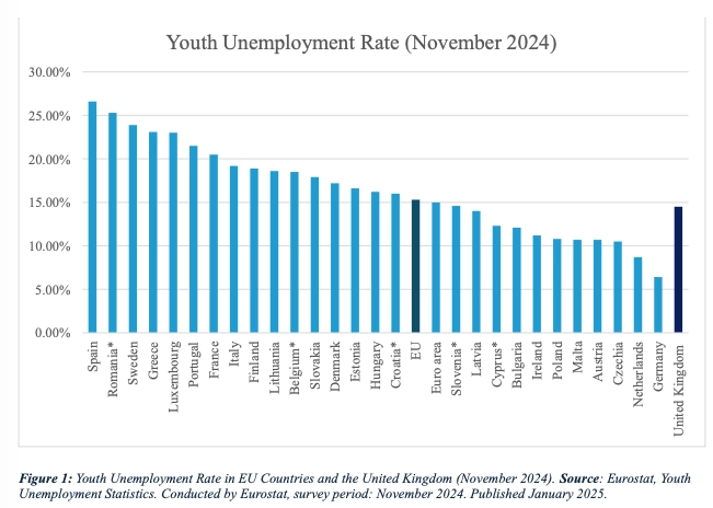 The analysis of youth unemployment across Europe and the United Kingdom reveals a multi-layered and enduring issue, one shaped by both cyclical economic downturns and deep-rooted structural weaknesses. While countries like Germany and the Netherlands maintain relatively low rates, others, including Spain, Romania, and Greece, continue to face alarmingly high youth joblessness. The United Kingdom, though no longer part of the EU, mirrors the EU average, pointing to shared challenges in navigating post-pandemic recovery, educational alignment, and labour market entry.